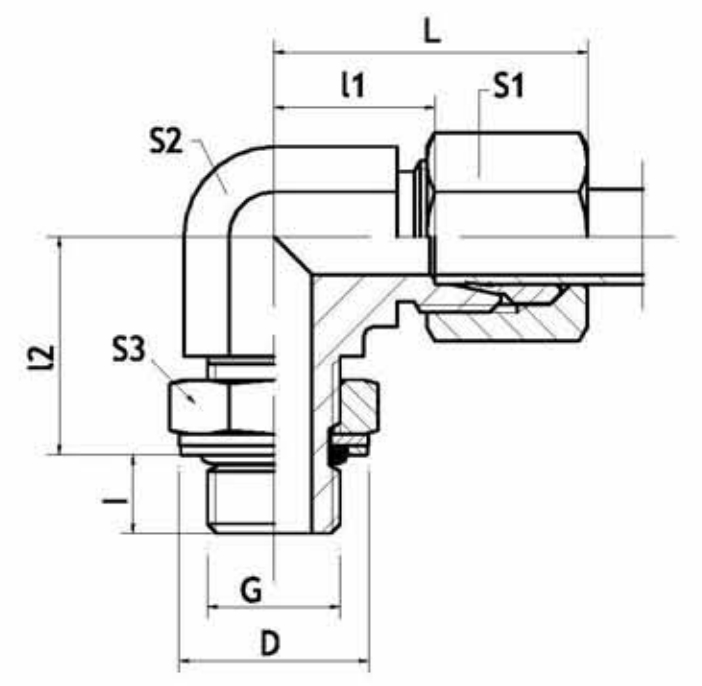 不带螺母和卡套时的订货代号示例:2D10L-PMODX